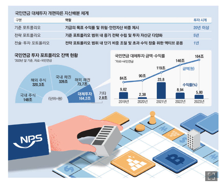 24년 1분기 기준으로 국민연금의 기금 윤용 수익률은 5.82%로 보고 되었으며 자산별 잠정수익률은 다음과 같습니다.