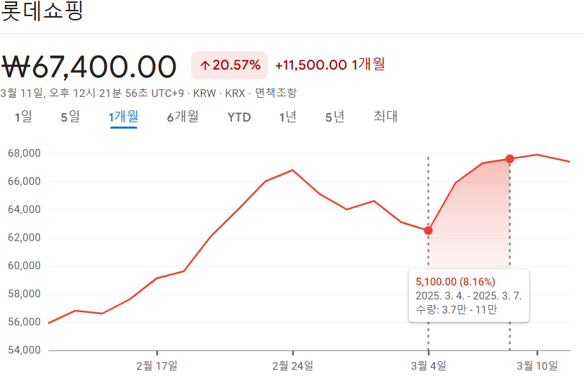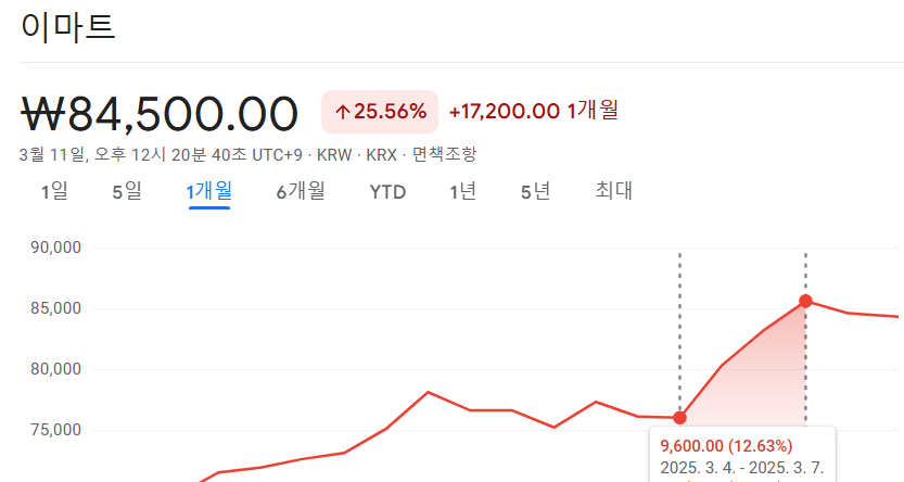 홈플러스가 법정 관리 소식에 반사이익을 본 곳들이 있습니다. 그곳은 이마트와, 롯데쇼핑입니다. 기간을 보면 3월 4일부터 7일까지 이마트의 경우 주가가 약 12%, 롯데쇼핑 경우 약 8% 의 상승이 일어난 것을 알 수 있습니다. 이것만 보더라도 홈플러스의 시장 점유율이 높다는 것을 의미합니다.