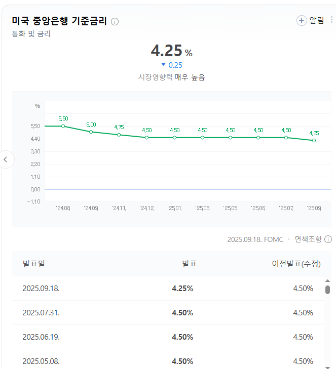 25년 9월 현재 미국 자산시장은 역사상 최고치에 다르고 있는 가운데 미국 나스닥 지수가 고공행진을 하고 있습니다. 그런데 이런 상황에서 미국의 독립적인 은행인 연준은 0.25% 금리 인하을 단행 했습니다. 미국 연준의장의 인터뷰를 보면 선제적인 금리 인하을 통하여 미국의 경제위기를 방어한다는 내용이었습니다.